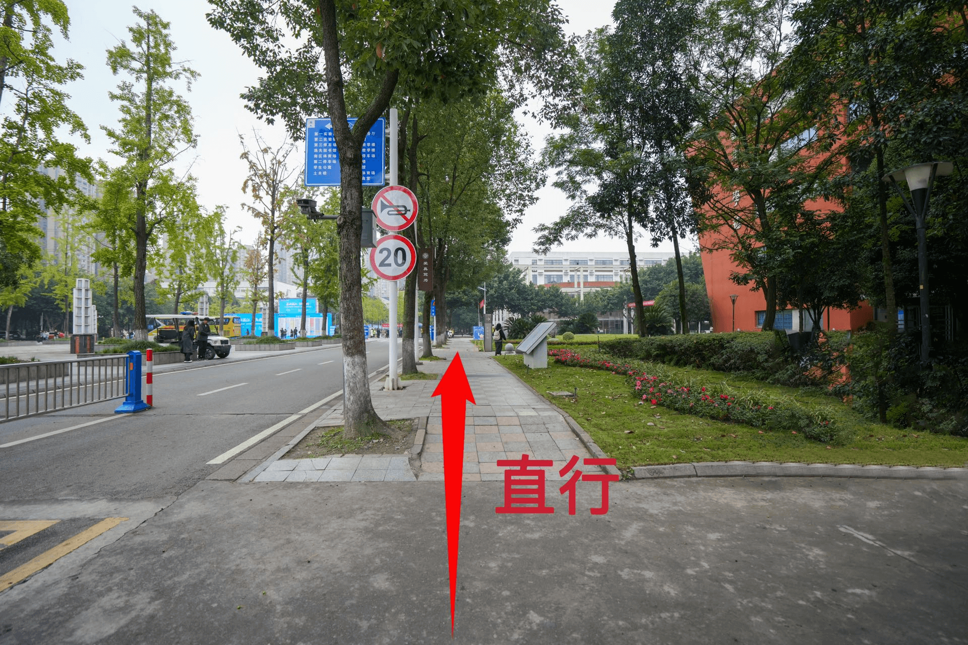 入校门路口直行